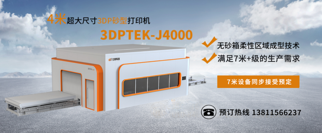 無砂箱 3D 打印機(jī)不斷實(shí)現(xiàn)技術(shù)革新,如三帝科技的 3DPTEK-J4000 采用無砂箱柔性區(qū)域成型技術(shù),可按需定制擴(kuò)展打印平臺(tái),最大能成型 4 米的砂型,滿足 10 米 + 級(jí)的生產(chǎn)需求,突破了傳統(tǒng)鑄造設(shè)備的尺寸限制,為大型復(fù)雜鑄件的制造提供了可能.